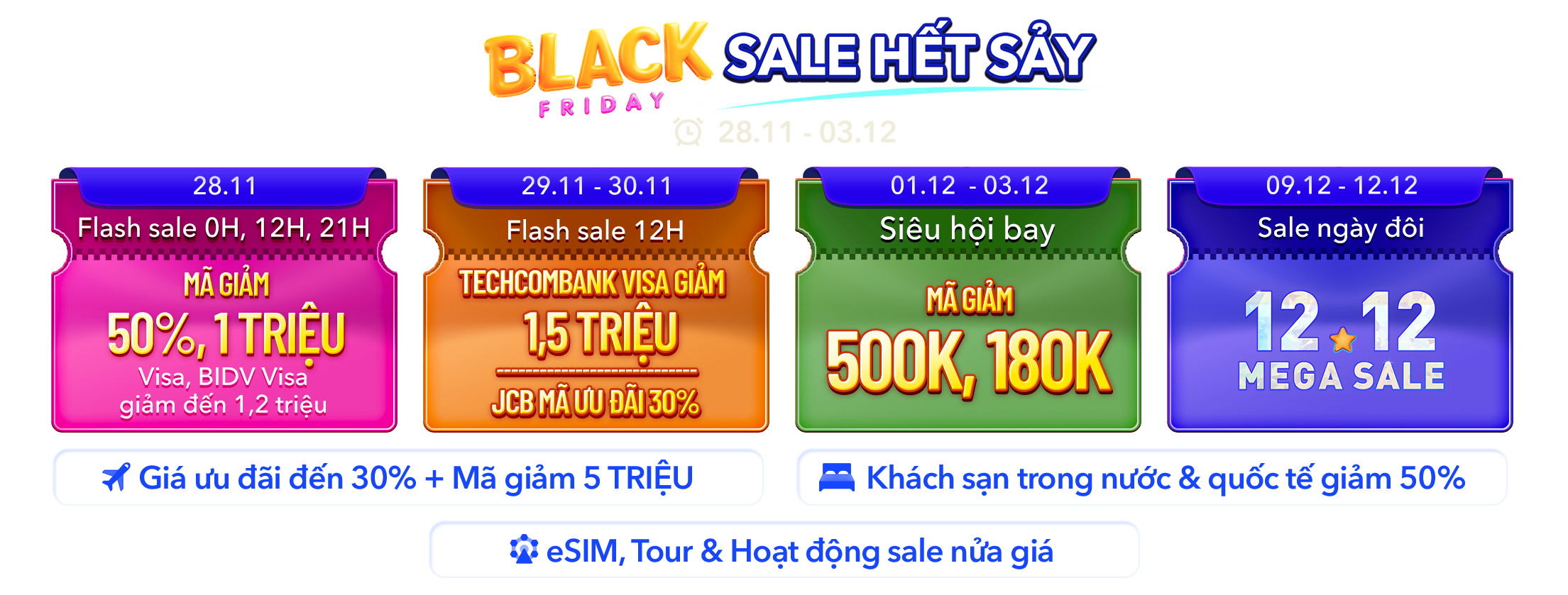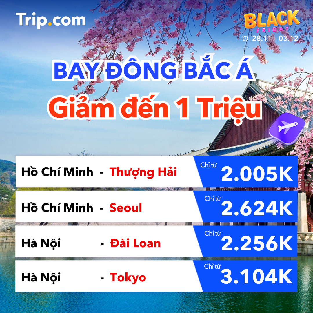 Siêu deal bay - mã giảm 1,5 TRIỆU, mua 1 tặng 1 vé vui chơi, khách sạn sale 50% và hơn thế nữa! Từ nay đến hết 03/12. Xem ngay!